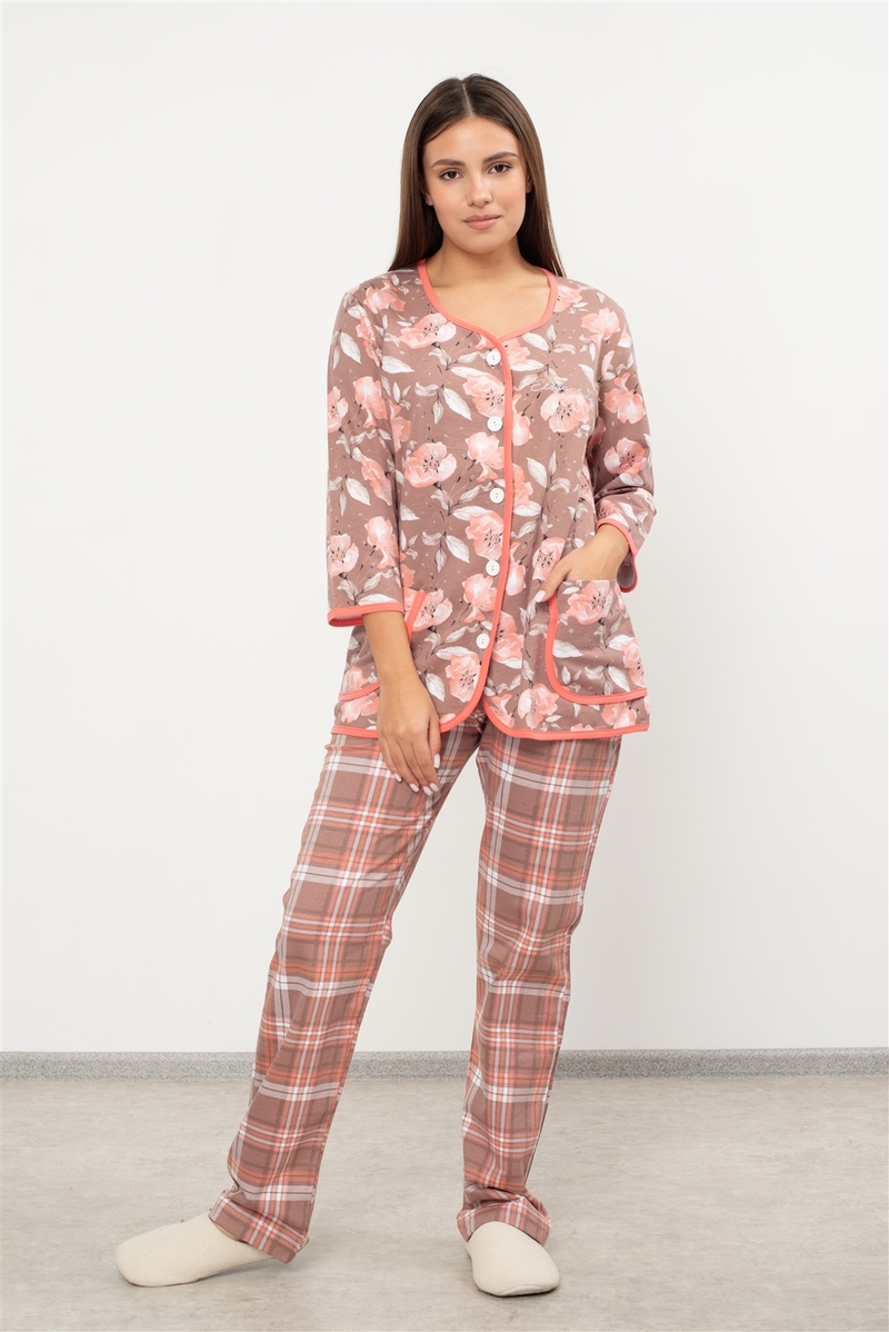 Пижамный комплект «Надежда» (футер) – это воплощение уютного стиля и заботы о комфорте. Комплект свободного кроя, сшитый из невероятно мягкого и дышащего футера на основе натурального хлопка, создан для полного расслабления. Удлинённая рубашка на пуговицах украшена нежным цветочным принтом и дополнена практичным накладным карманом. Брюки на удобной резинке выполнены в стильную классическую клетку. Такой элегантный контраст делает комплект по-настоящему стильным. Эта пижама идеально подходит для сладкого сна, спокойного отдыха дома в кругу семьи и станет прекрасным подарком, в котором каждая деталь говорит о внимании к качеству. Широкий размерный ряд от 48 до 60 позволяет подобрать идеальный вариант.