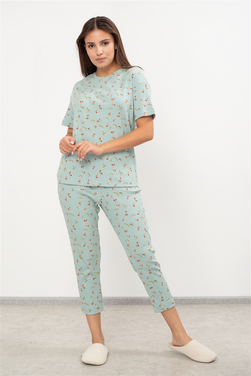 Женская пижама «Леди» — это элегантный домашний образ для современной женщины. Комплект выполнен в четырёх оттенках с цветочным узором, которые создают ощущение весенней свежести и безмятежности. Данная модель доступна следующих расцветках: мятной, солнечно-жёлтой, нежно-розовой и уютном капучино. Укороченные зауженные брюки и лаконичная футболка из мягкого трикотажа с добавлением эластана идеально подходят для комфортного сна, отдыха дома или прогулки в летнем саду. Натуральный состав на основе хлопка обеспечивает приятные тактильные ощущения и заботу о коже, а широкий размерный ряд от 46 до 58 позволит каждой женщине найти свой идеальный вариант.